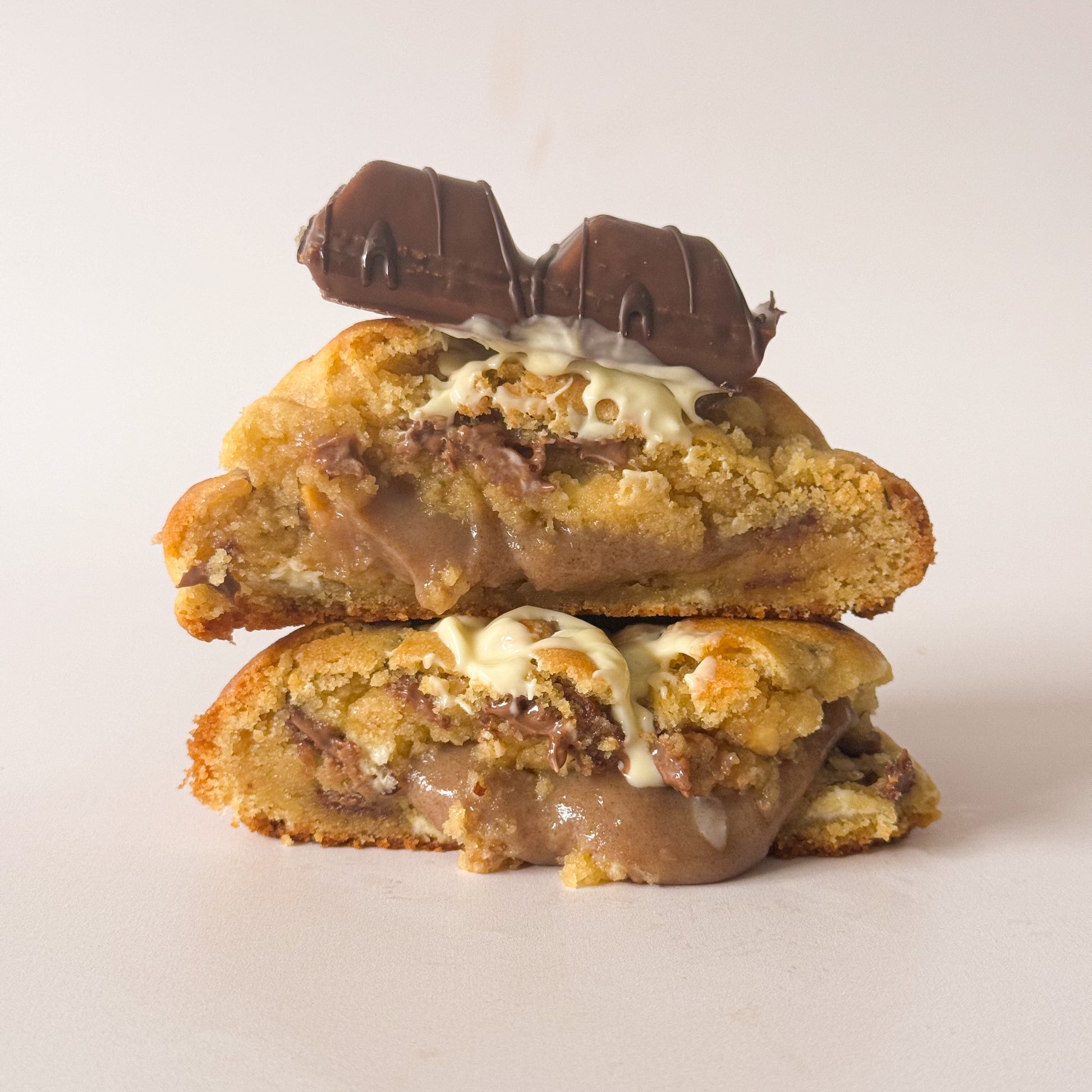 Our vanilla & malt cookie dough base is mixed with couverture premium milk chocolate chips, hazelnuts and malted biscuits, and is then filled with our housemade hazelnut cream filling